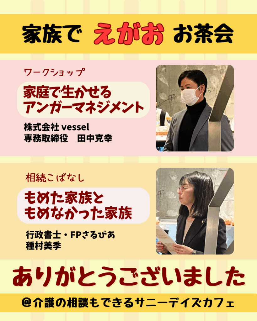 ・年明け1/22(木)午後に、サニーデイズカフェにて、遺言作成のワークショップを開催予定です!