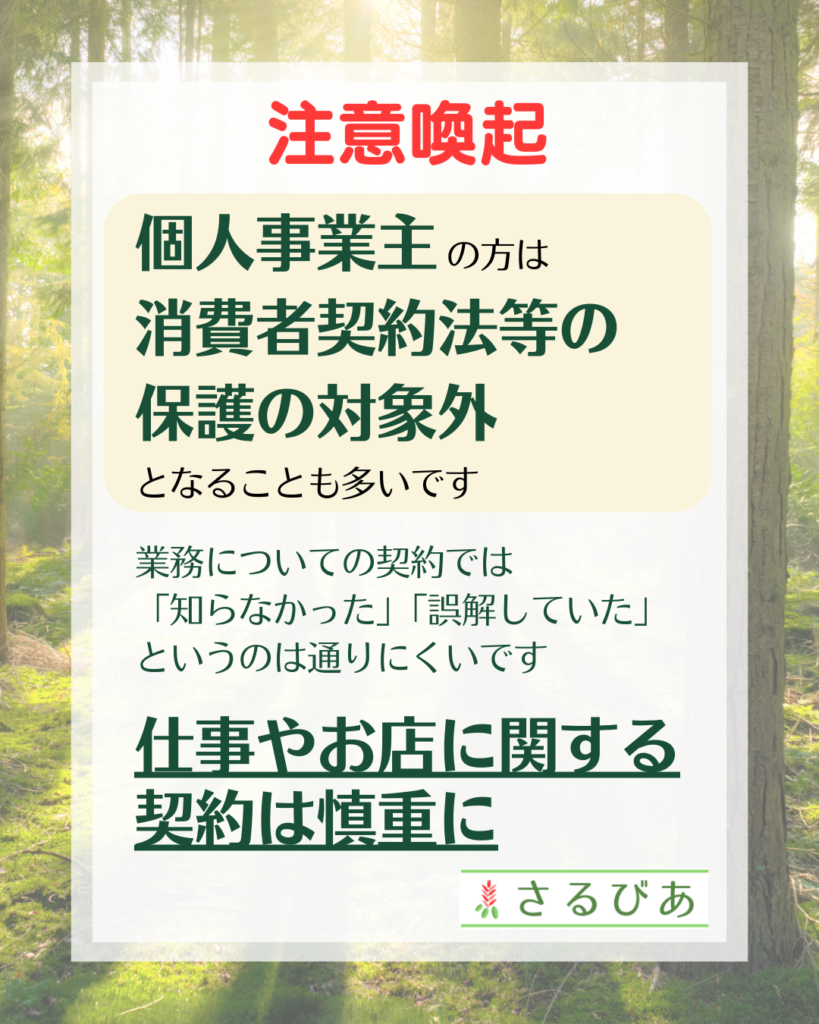 個人事業主は、個人であっても、「事業」に関することはプロであり相手方と同じレベルの力があるとみなされます。